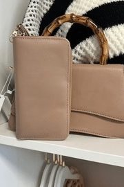 Treat yourself to this irresistible Date Night Clutch - two bags in one! Featuring a bamboo handle and an included wallet clutch with a handy removable wristlet, you can have fun with a two-for-one deal! Let the good times roll!